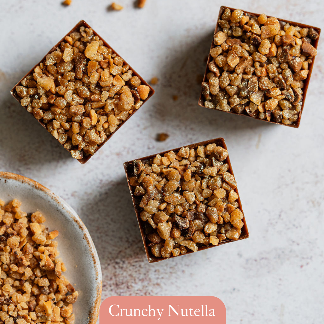 - Crunchy Nutella: Milk chocolate shell filled with indulgent Nutella and topped with crunchy hazelnut
