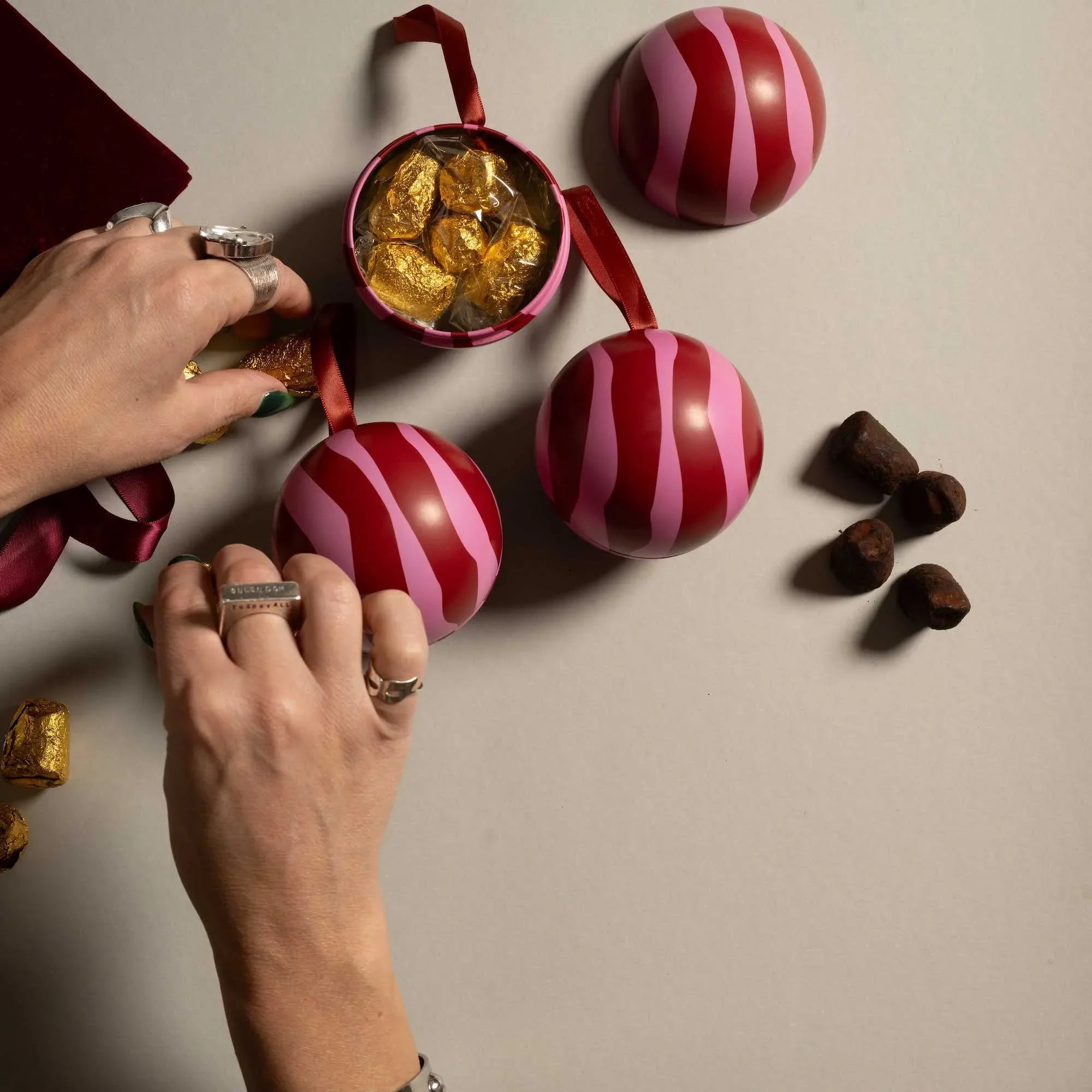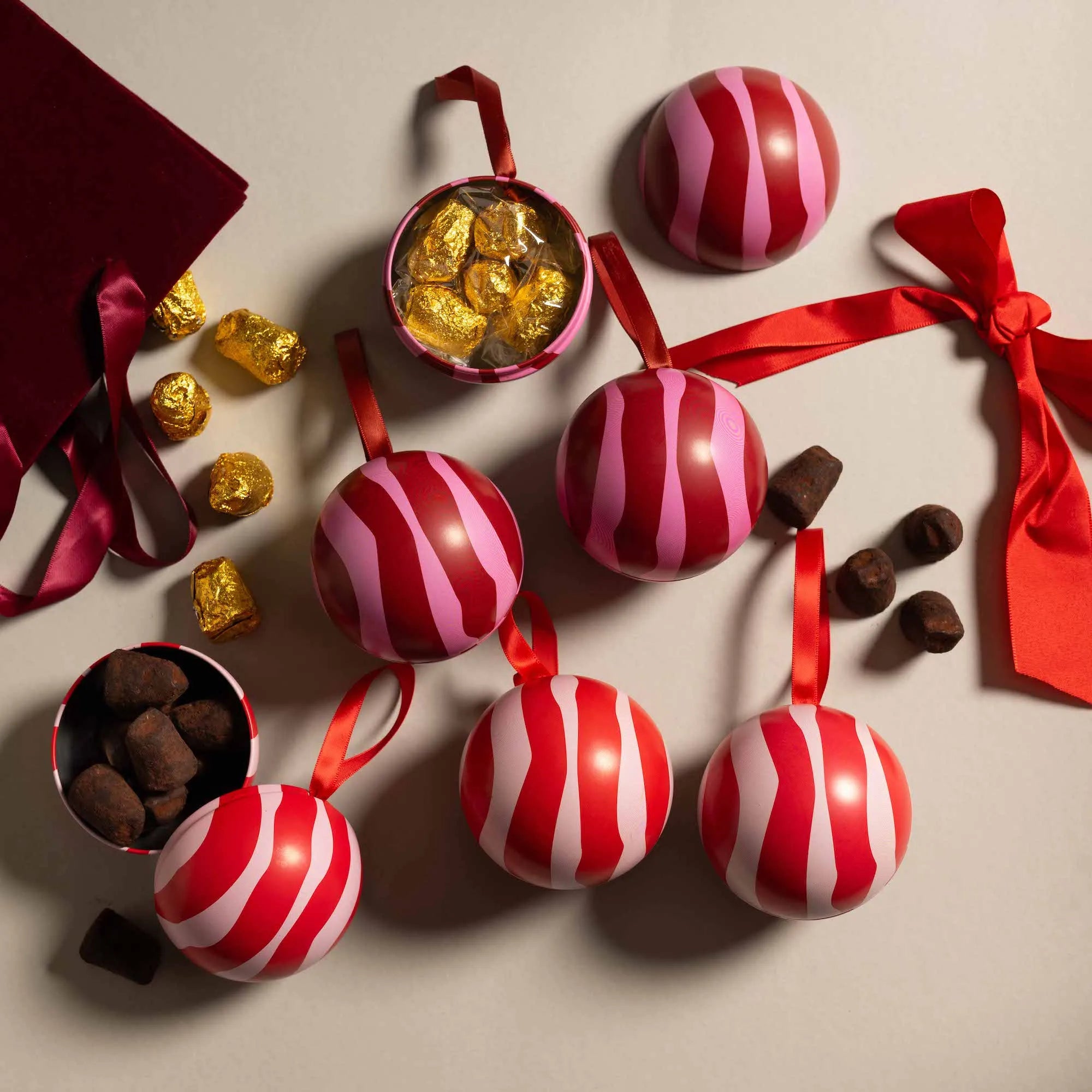 Gåva Gifting Red and Pink Stripe Christmas Filled Baubles
