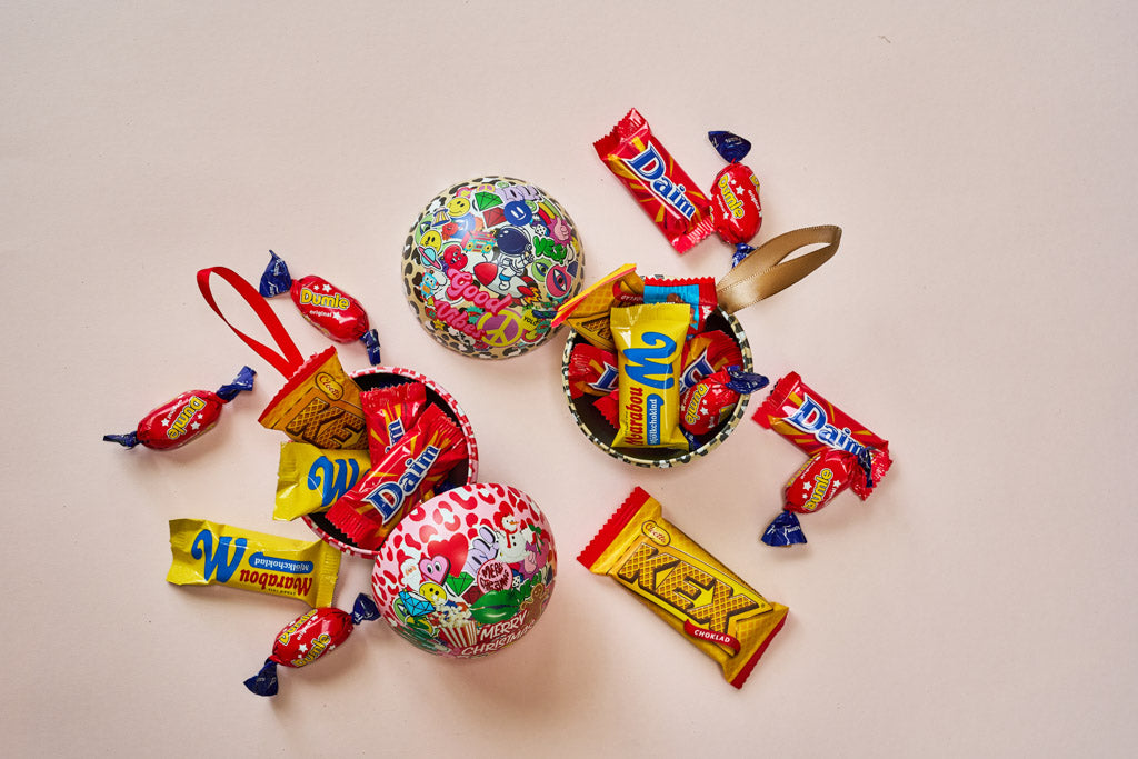 Bauble in Swedish design filled with your choice of Swedish Chocolates, Swedish Candy or Chocolate Truffles