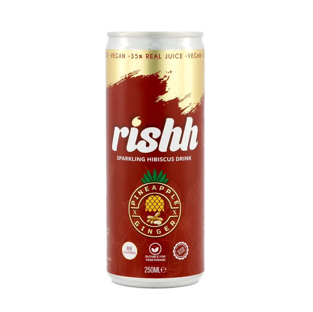 RISHH Sparkling Hibiscus Drink - Pineapple & Ginger (4-PACK)
