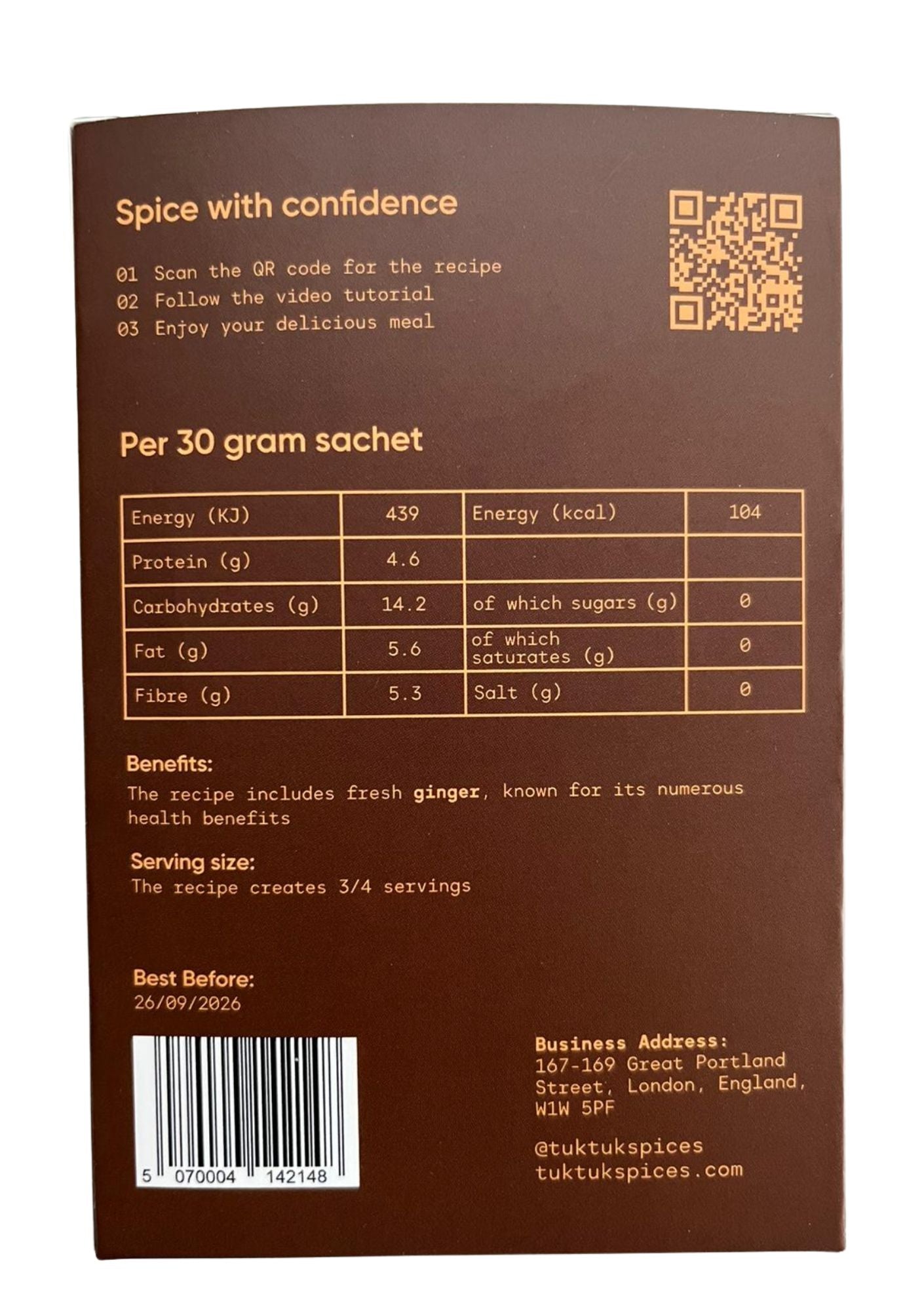 Create a creamy, comforting Dal Makhani at home with ease. Tuk Tuk's Dal Makhani Spice Sachet contains a perfectly balanced blend of spices, pre-measured to the ideal quantity for deep, authentic flavour.