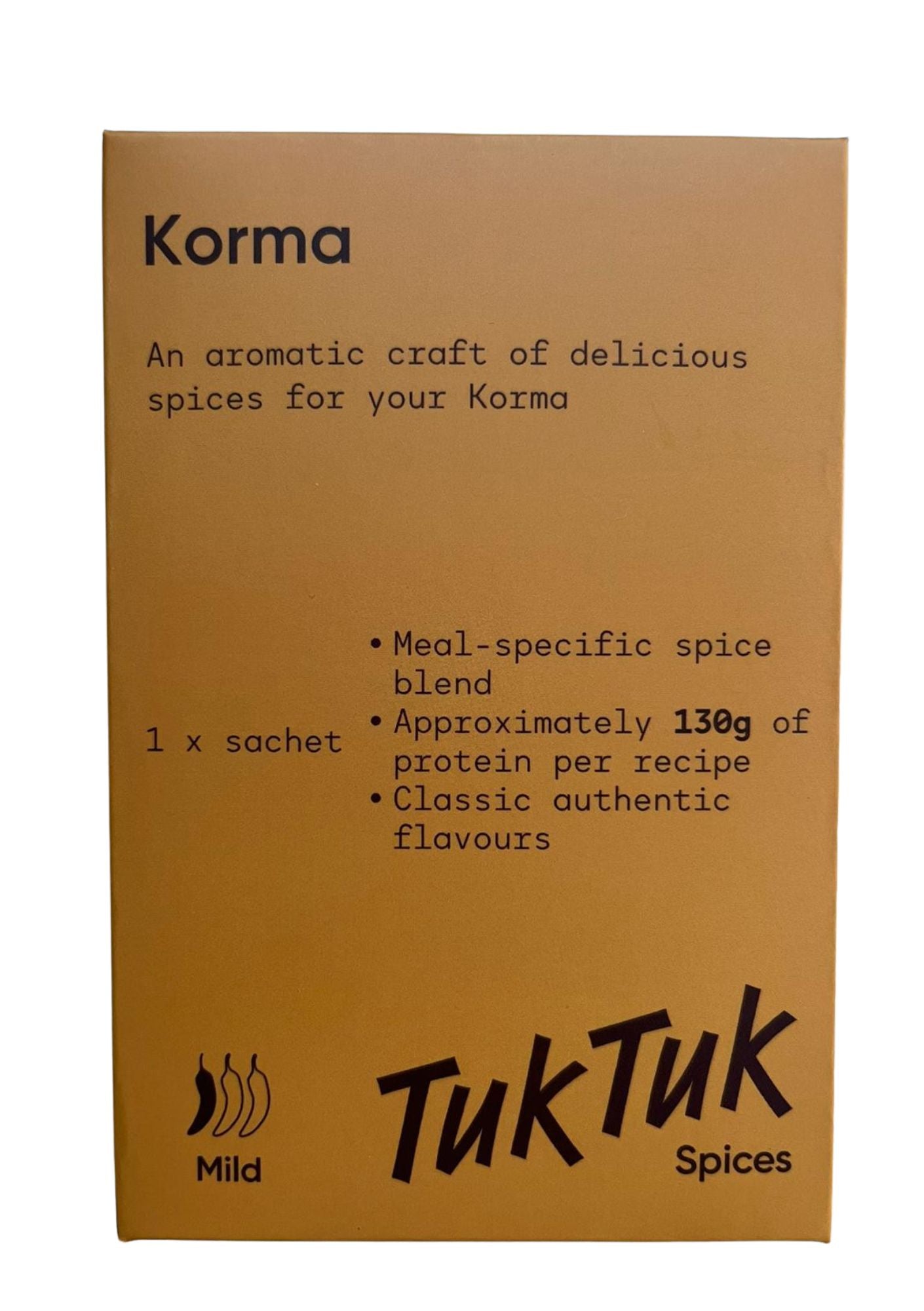Create a mild, creamy and fragrant Korma at home with ease. Our Korma Spice Sachet contains a perfectly balanced blend of aromatic spices, measured to the ideal quantity for a smooth, flavourful dish every time.